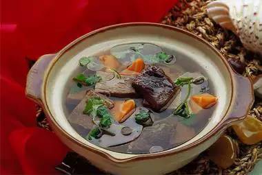 这可是煲汤的关键。研究发现,原料与水分别按11、11.5、12等不同的比例煲汤,汤的色泽、香气、味道大有不同,结果以11.5时最佳。对汤的营养成分进行测定,此时汤中氨态氮(该成分可代表氨基酸)的含量也最高,甚至高于用水较少时。这是因为水的加入量过少,原料不能被完全浸没,影响了汤中营养成分的浓度。随着加水量的增加,汤中氨态氮被稀释后浓度会有所下降。但是,汤中钙、铁的含量以原料与水1:1的比例时为最高。