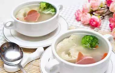 注意调味用料投放顺序,特别注意熬汤时不宜先放盐。因盐会使原料中水分排出,蛋白质凝固,鲜味不足。通常60℃~80℃温度易引起部分维生素破坏,而煲汤使食物温度长时间维持在85℃~100℃。故在汤中加蔬菜应随放随吃,以减少维生素C破坏。汤中适量放入味精、香油、胡椒、姜、葱、蒜等调味品,使其别具特色,但注意用量不宜太多,以免影响汤的原味。