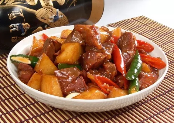 土豆烧牛肉是绝配,牛肉能补充土豆中缺乏的矿物质铁和蛋白质,土豆则可补充牛肉缺少的碳水化合物和维生素C。