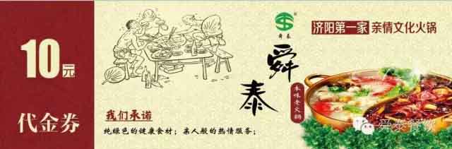 "舜泰火锅"就餐满一百元菜金送20元代金券