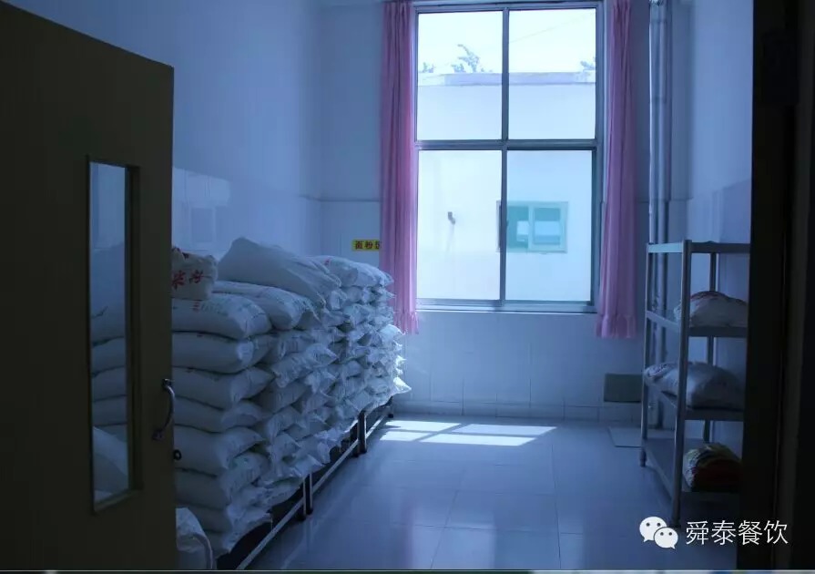 玉皇庙小学餐厅米面的摆放很标准:食物要离地,离墙