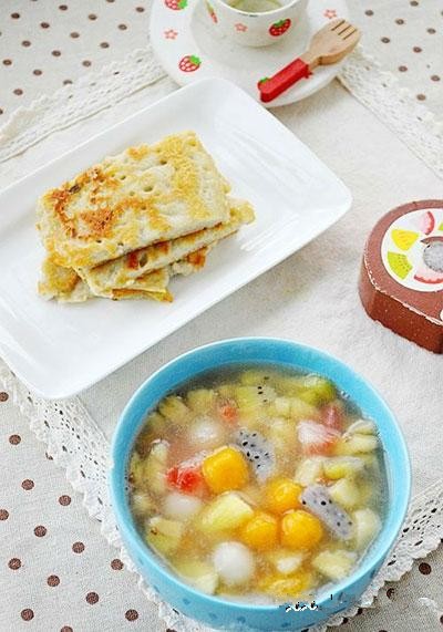 11、紫薯松糕+水果羹+白煮蛋