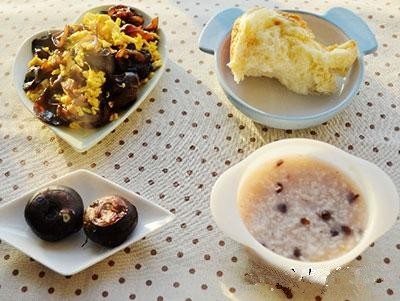 3、面包+木耳炒鸡蛋+赤豆粥+煮马蹄