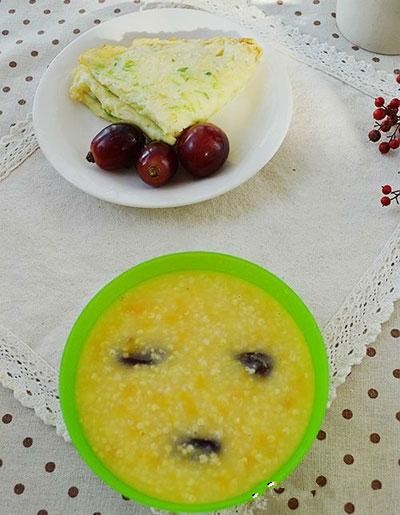19、青瓜蛋饼+小米红枣红薯粥+提子
