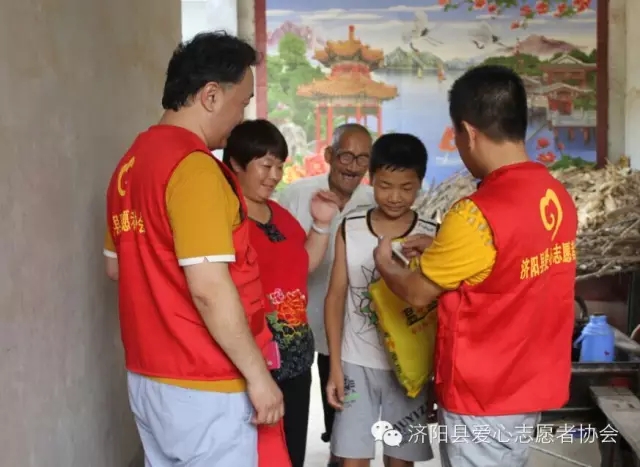 2015年8月1日上午11点,济阳县爱心志愿者协会部分会员看望了垛石镇家庭困难学生双喜,为这个不幸的家庭送来了关爱和祝福。