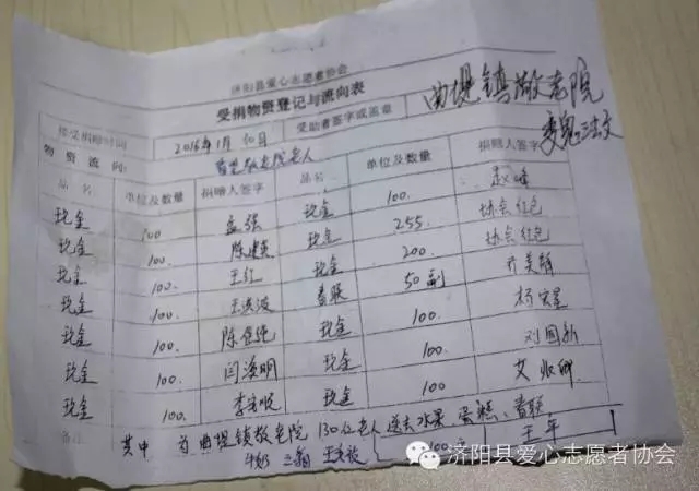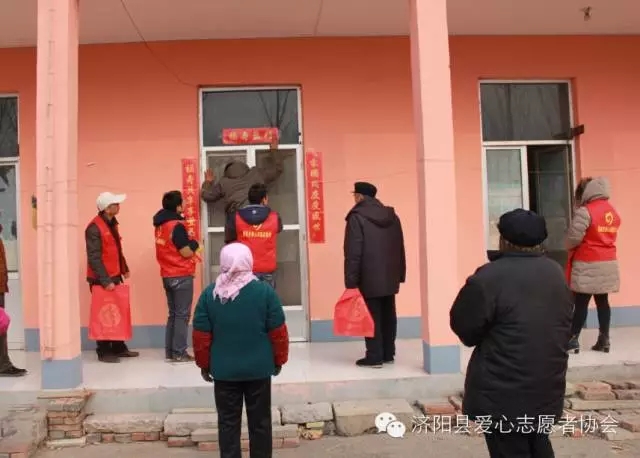 2016130日,春节临近。济阳县爱心志愿者协会自发组织看望敬老院老人活动,为济阳曲堤镇敬老院和回河镇敬老院送去241份爱心物资并为90户老人贴上春联。