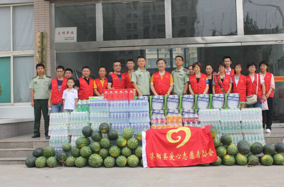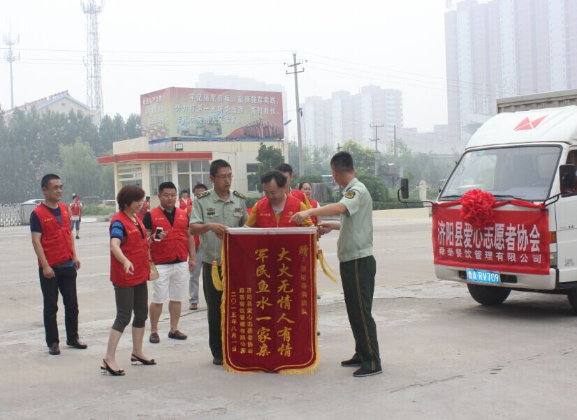 2015年八一建军节来临之际,幸运飞行艇168体彩官网现场开奖直播(中国)官方网站:携手济阳县爱心志愿者协会为济阳消防大队官兵送去锦旗和爱心物资。